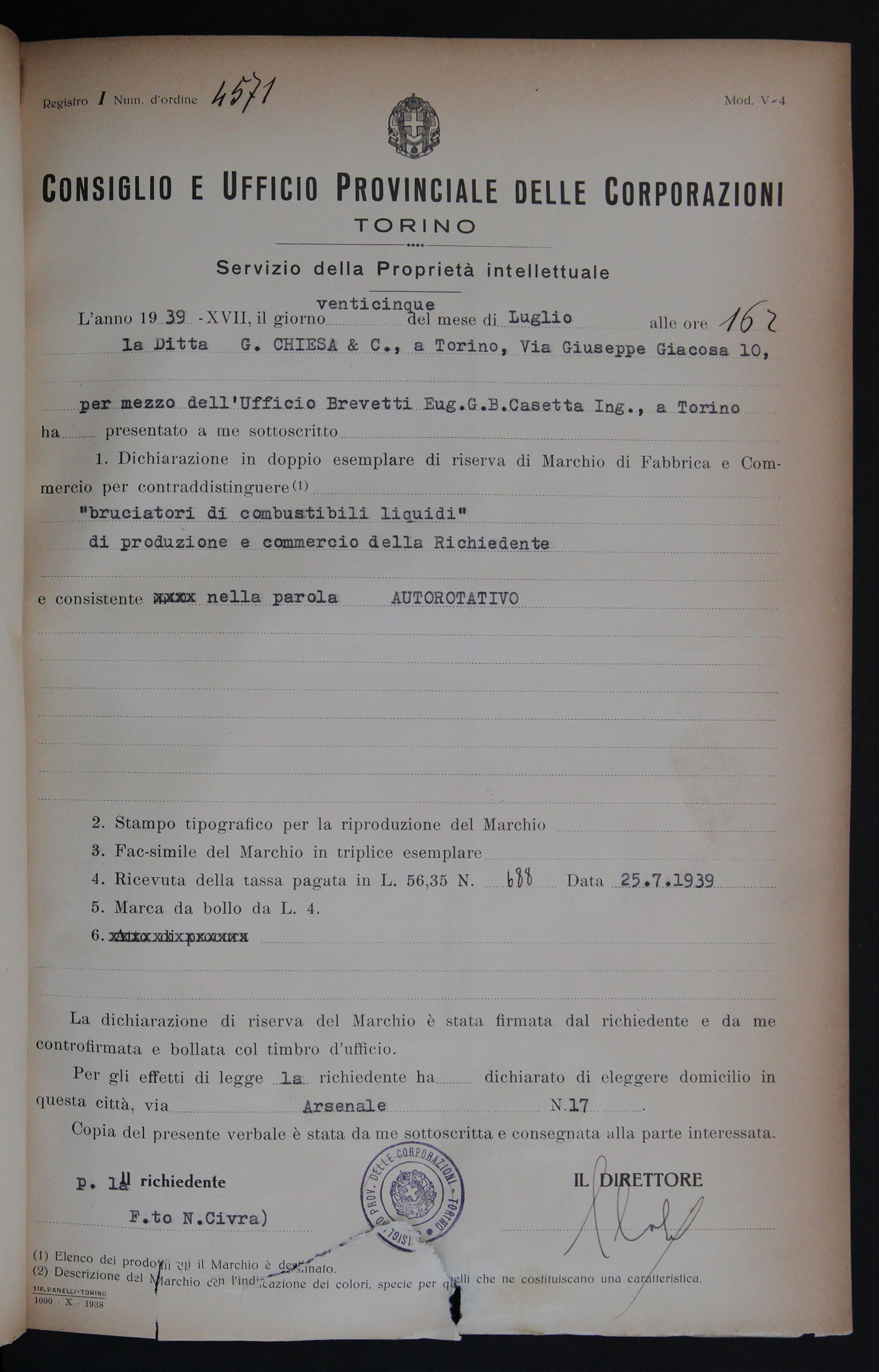 Consiglio e Ufficio Provinciale delle Corporazioni - Torino - Servizio della Proprietà Intellettuale